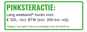 – Extra lang weekend huren: vanaf vrijdag 16.00 uur t/m maandag 8.30 uur!